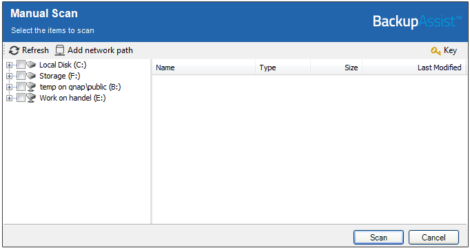 Just click on the button to open the Manual Scan screen. From here, you can select the files and folders you want to scan. This means you can scan just one or two, individual drives, or your whole system. (Shown below)