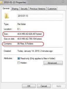 Now, let’s look at the properties for the 2010-01-01 folder it shows us that is the same size as the first backup.
